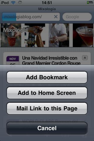 Ya tienes el icono de Mixologia en tu Iphone/Ipod Touch? 28 noviembre 200913 febrero 2010 / Daniel Cruz Cuando pongas en tu barra de direcciones mixologiablog.com, dale «+» y pulsa «add to home screen» 40.416691 -3.700345 Comparte esto: Comparte en Facebook (Se abre en una ventana nueva) Facebook Compartir en X (Se abre en una ventana nueva) X Enviar un enlace a un amigo por correo electrónico (Se abre en una ventana nueva) Correo electrónico Compartir en LinkedIn (Se abre en una ventana nueva) LinkedIn Compartir en Reddit (Se abre en una ventana nueva) Reddit Imprimir (Se abre en una ventana nueva) Imprimir Me gusta Cargando... Relacionado